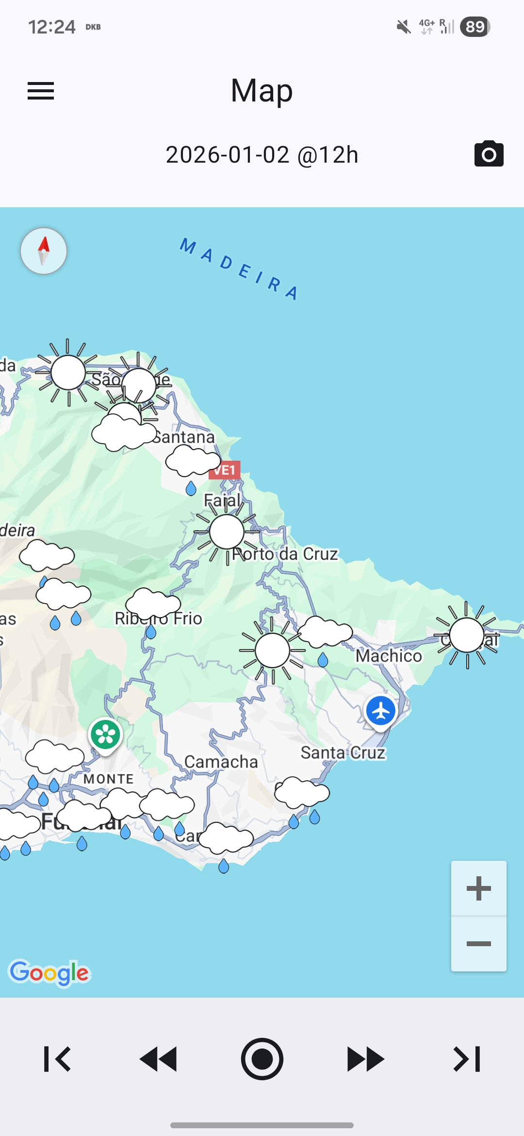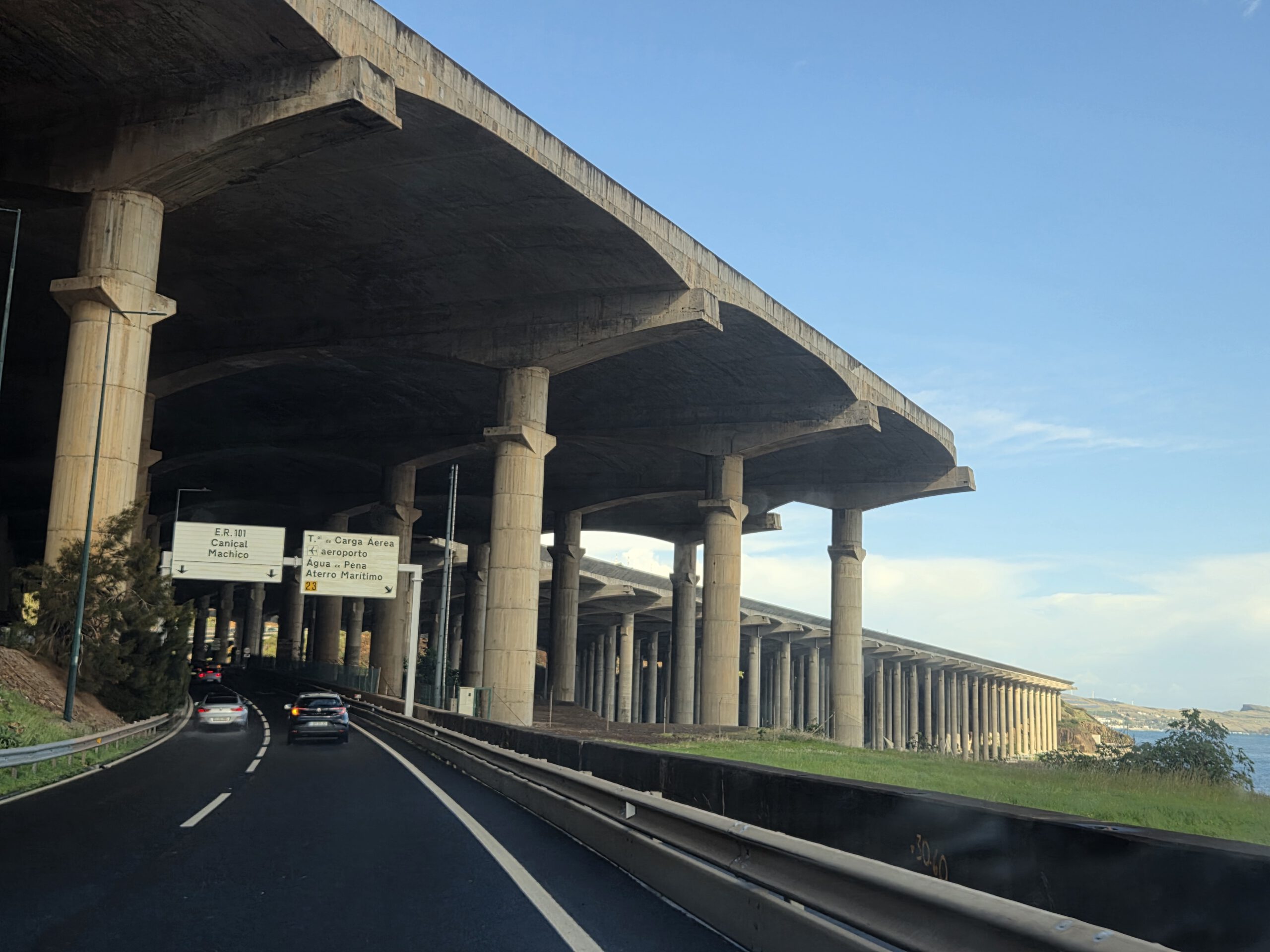 Klass Wagen ist zumindest heute fest in Frauenhand. Tatsächlich haben wir dank der Meilen-Buchung nur eine laue Mail – also keine Voucher, keine Versicherung, keinen zweiten Fahrer, nichts. Nachdem wir das alles dazugebucht haben, bleibt die Frage, ob der Weg über die Meilen wirklich ein Schnäppchen war. Aber egal, nun sind wir hier und steigen in unseren VW T-Cross, Automatik, und fahren mit einem Blick auf die Madeira-Wetter-App der Sonne entgegen. Zuvor hatte uns die Mietwagenfachfrau noch entschuldigend erklärt, dass dies wirklich ein außergewöhnliches Jahr sei – normalerweise sei es um den Jahreswechsel herum immer warm und trocken. „Aber zumindest beim Feuerwerk hat es nicht geregnet“, merkt sie lächelnd an und schaut zusammen mit der Reiseleitung nochmal auf diverse Webcams, um regenfreie Zonen zu finden.