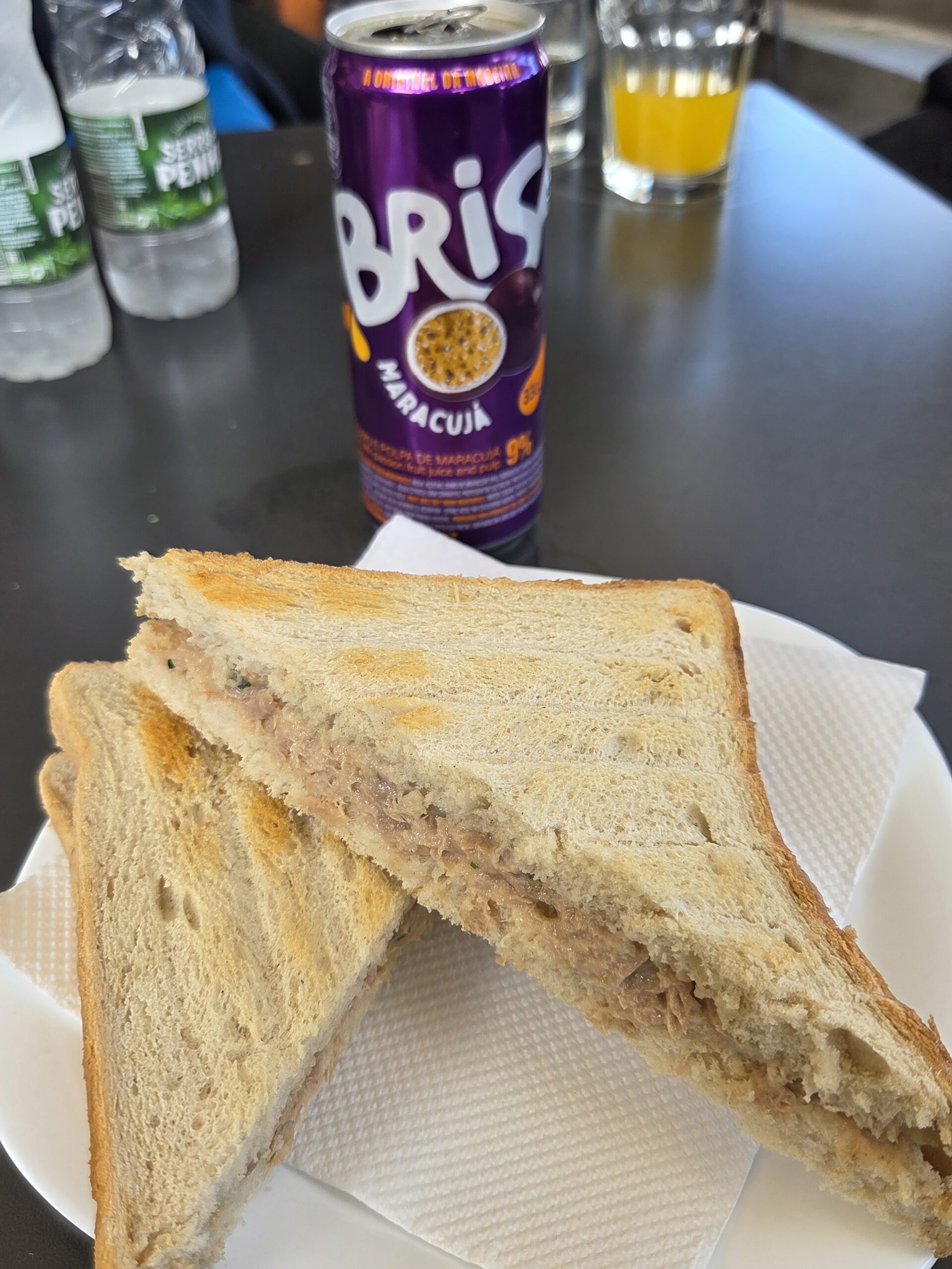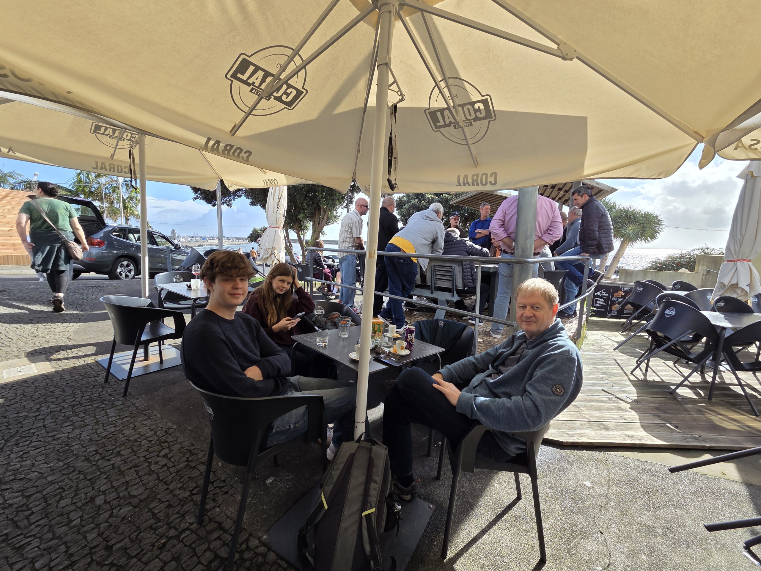 Erster Stopp ist Canico, tief im Osten, mit Walfangmuseum und großem Frachthafen. Aber: Es strahlt die Sonne! Da viele Bars knallvoll sind, landen wir in einem ganz kleinen Laden namens Tasco do Samao, zahlen für unsere – zugegebenermaßen: trockenen – Sandwiches plus Getränken nicht einmal 20 Euro. Direkt hinter uns spielen reife Einheimische lautstark an einem Tisch ein Spiel, das Café ist wohl ein Treffpunkt im Ort.