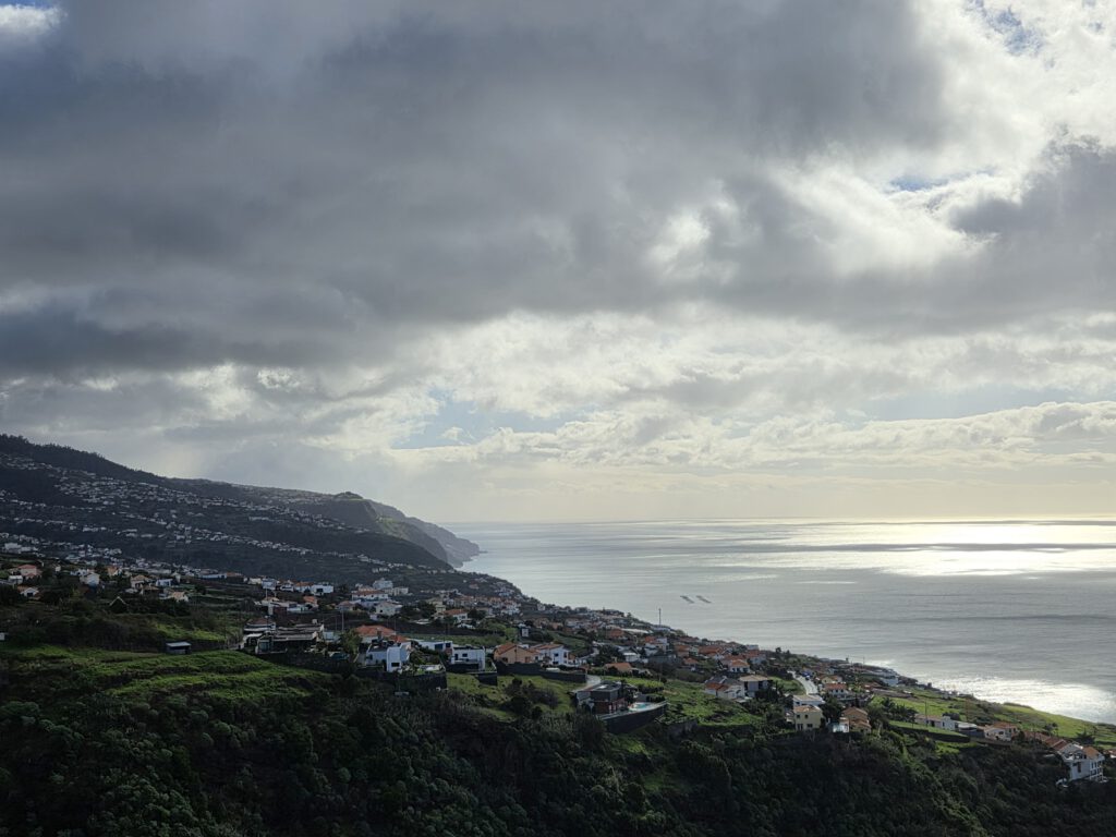 Nachts stürmt es, nachts regnet es. Morgens nieselt es und frisch ist es auch. Aber: die Klimaanlagen können auch heizen … Und ganz hervorragend unsere Wäsche trocknen. Nicole schmökert sich weiter fest, in einem Krimi, den sie in der Vila Clementina im Regal gefunden hat. Louisa und Gerald lernen Mathe. Kilian chillt. Allerdings müssen wir noch einmal nach Funchal zu unserer ersten Unterkunft: Kilian hatte sein Original-Apple-Kabel dort vergessen, Vermieter Pedro hatte schon am Freitag zugesagt, es im zugänglichen Briefkasten zu deponieren. Doch als wir am frühen Nachmittag dort ankommen – ein leerer Briefkasten. Pedro bedauert, dass das Kabel noch nicht drin liegt, verspricht aber zu schauen…