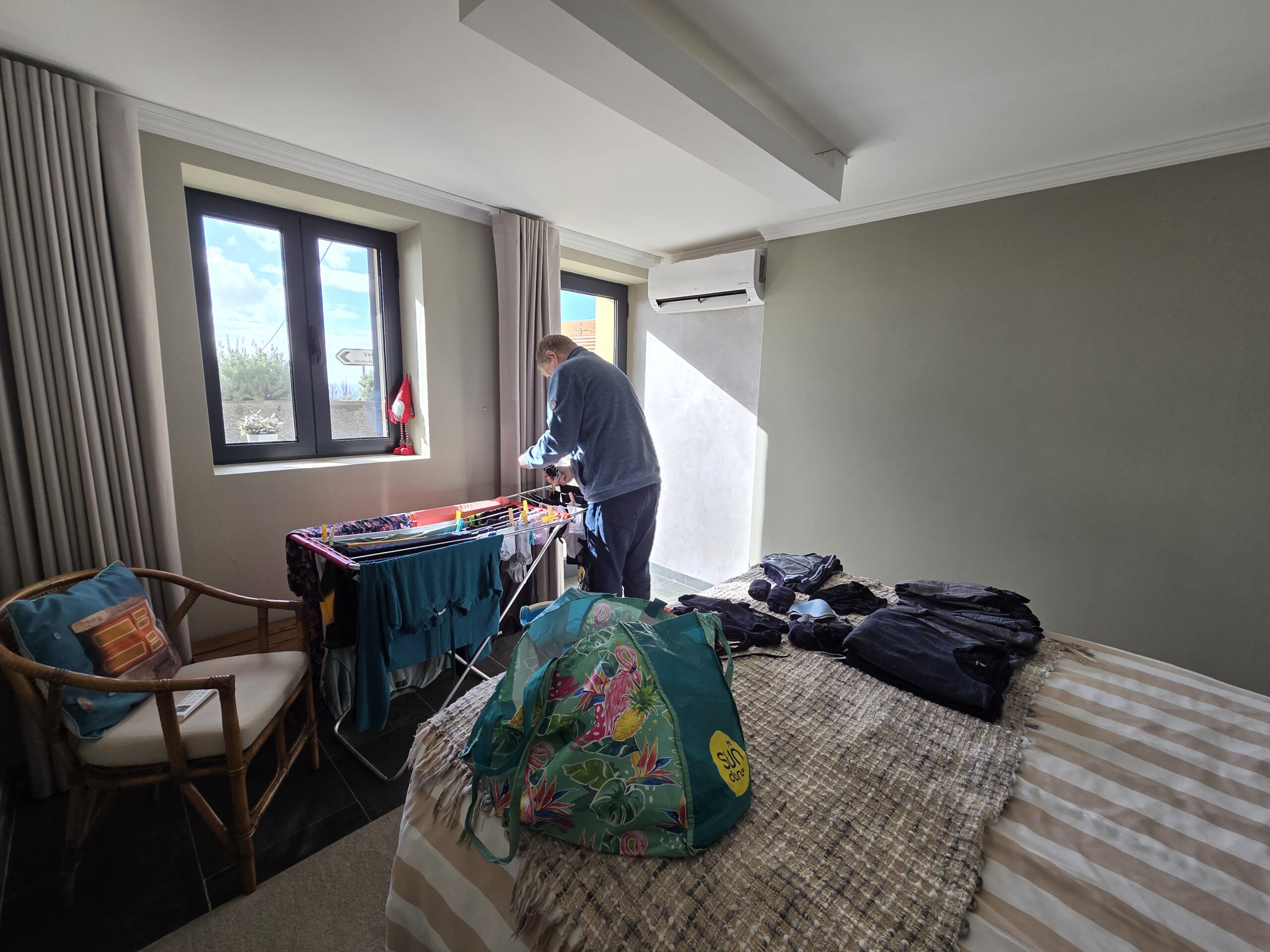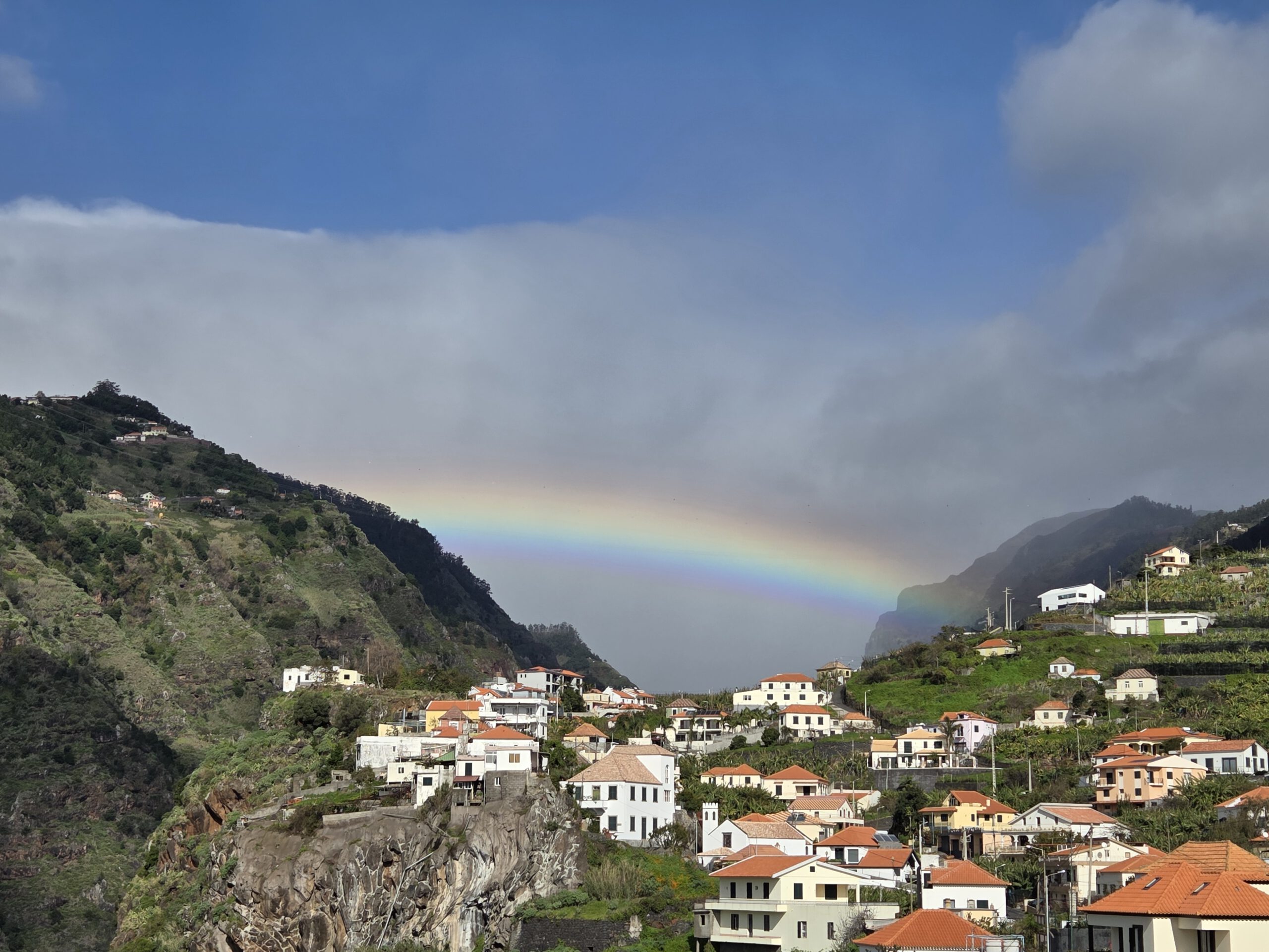 Nachts stürmt es, nachts regnet es. Morgens nieselt es und frisch ist es auch. Aber: die Klimaanlagen können auch heizen … Und ganz hervorragend unsere Wäsche trocknen. Nicole schmökert sich weiter fest, in einem Krimi, den sie in der Vila Clementina im Regal gefunden hat. Louisa und Gerald lernen Mathe. Kilian chillt. Allerdings müssen wir noch einmal nach Funchal zu unserer ersten Unterkunft: Kilian hatte sein Original-Apple-Kabel dort vergessen, Vermieter Pedro hatte schon am Freitag zugesagt, es im zugänglichen Briefkasten zu deponieren. Doch als wir am frühen Nachmittag dort ankommen – ein leerer Briefkasten. Pedro bedauert, dass das Kabel noch nicht drin liegt, verspricht aber zu schauen…