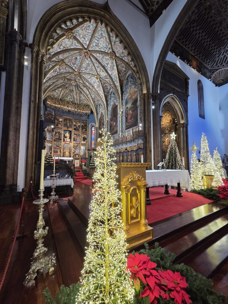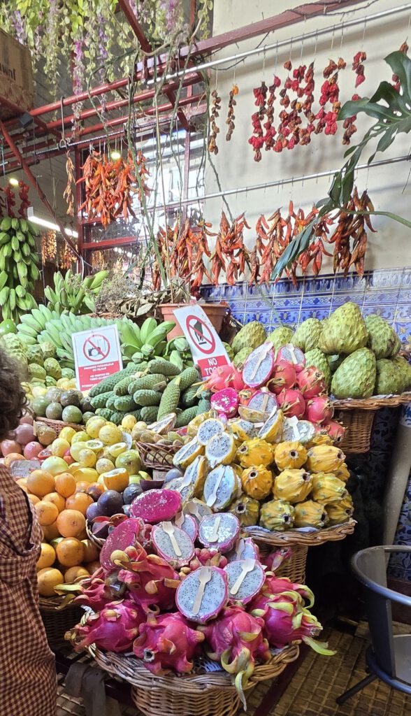 In der Kathedrale laufen gerade Dreharbeiten zu einem wohl besonderen Gottesdienst an, da entsprechend gewandete Herren in Kluft unterwegs sind. In den historischen Markthallen ist es etwas anstrengend, Früchte betrachten zu wollen, da man sofort angesprochen wird. Und als wir überlegen, mit der Seilbahn in den höhergelegenen Stadtteil Monte zu fahren, stellen wir fest: Keine Chance, da stehen schon wieder viel zu viele Menschen an …