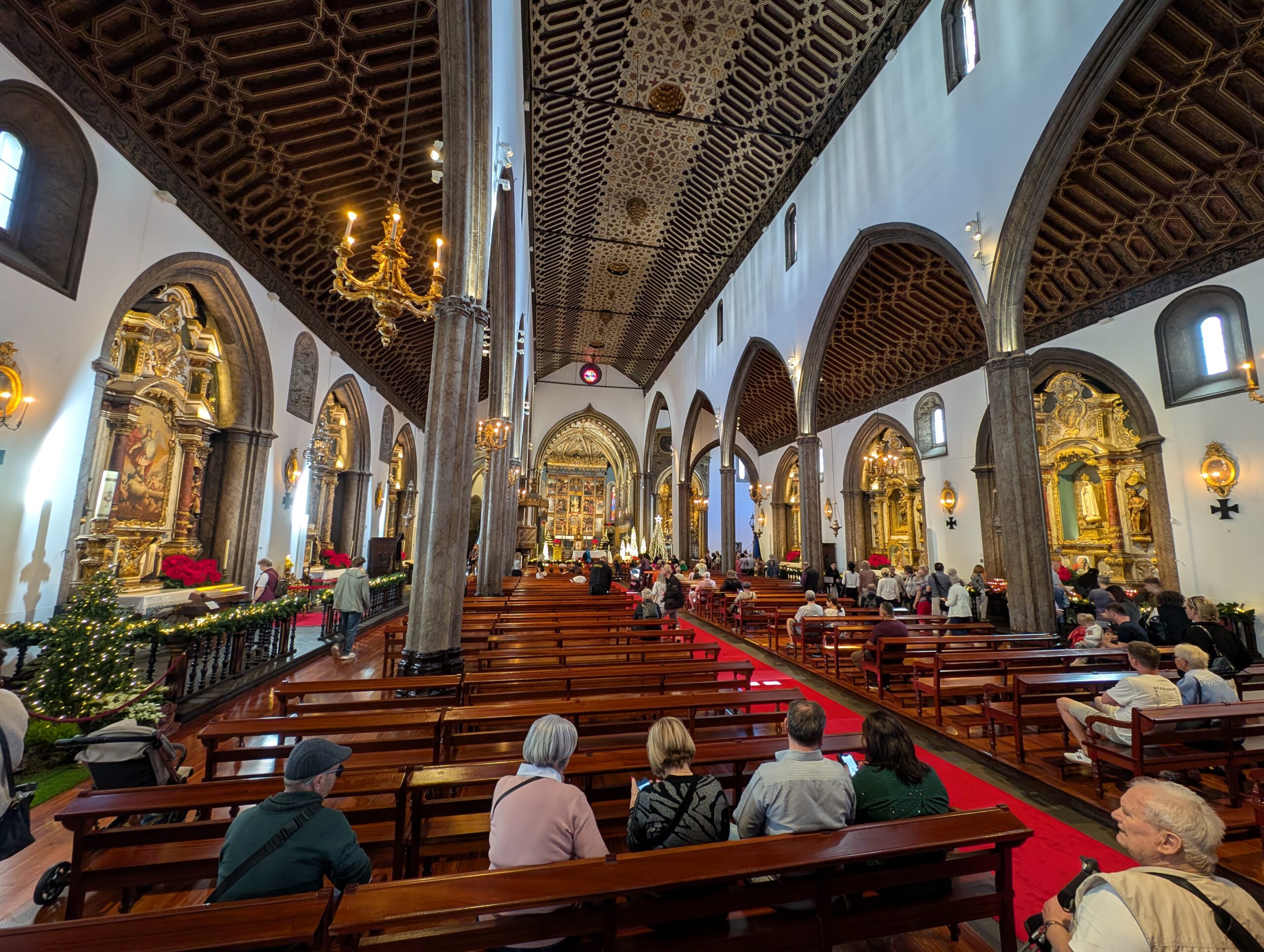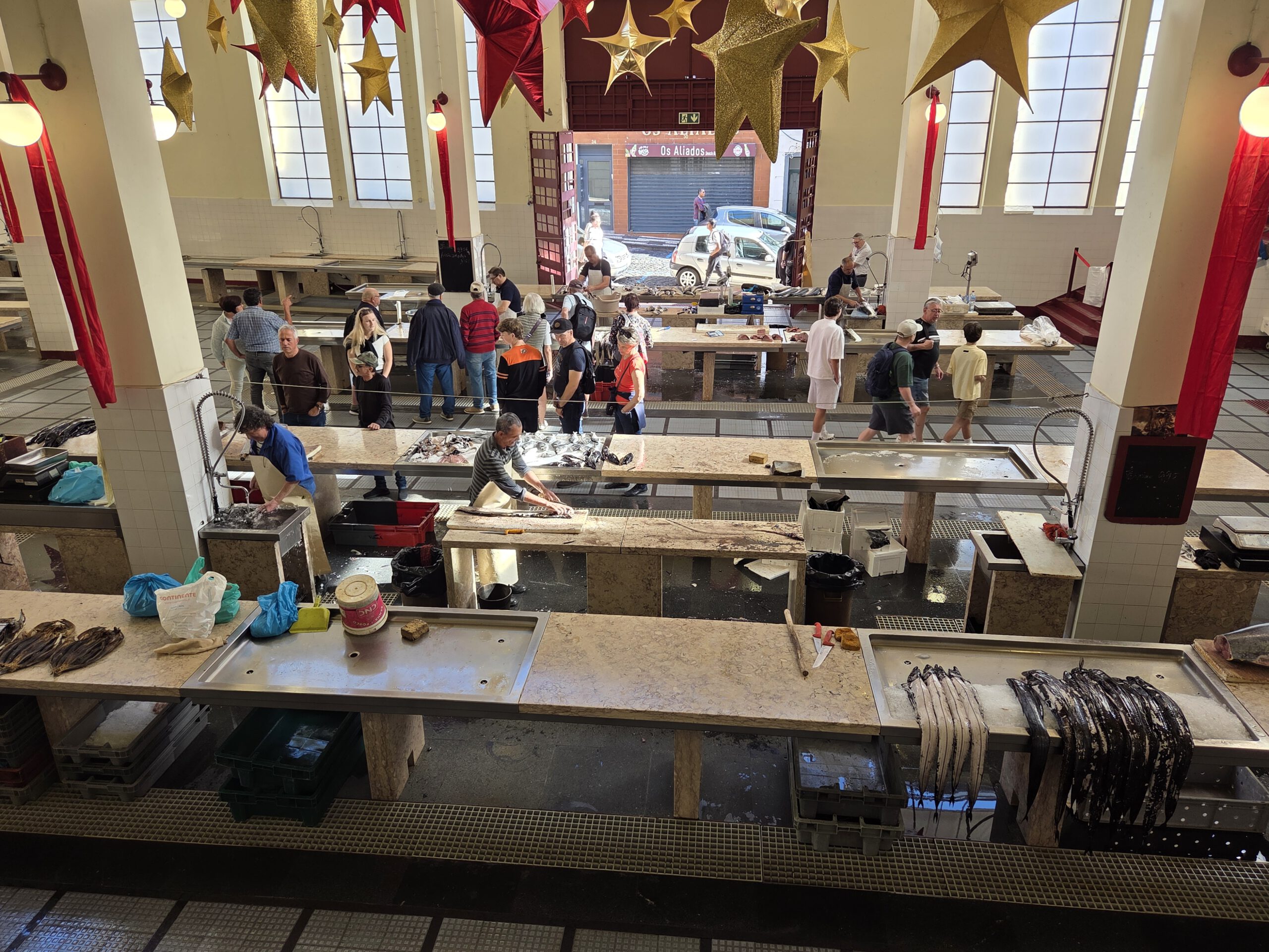 In der Kathedrale laufen gerade Dreharbeiten zu einem wohl besonderen Gottesdienst an, da entsprechend gewandete Herren in Kluft unterwegs sind. In den historischen Markthallen ist es etwas anstrengend, Früchte betrachten zu wollen, da man sofort angesprochen wird. Und als wir überlegen, mit der Seilbahn in den höhergelegenen Stadtteil Monte zu fahren, stellen wir fest: Keine Chance, da stehen schon wieder viel zu viele Menschen an …