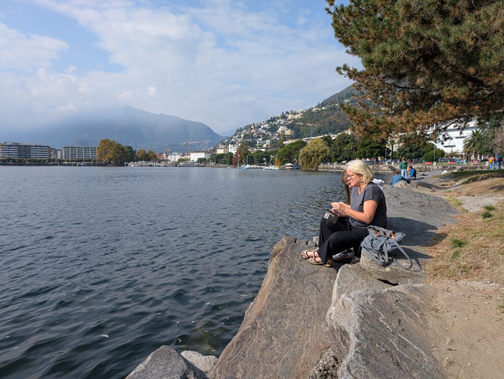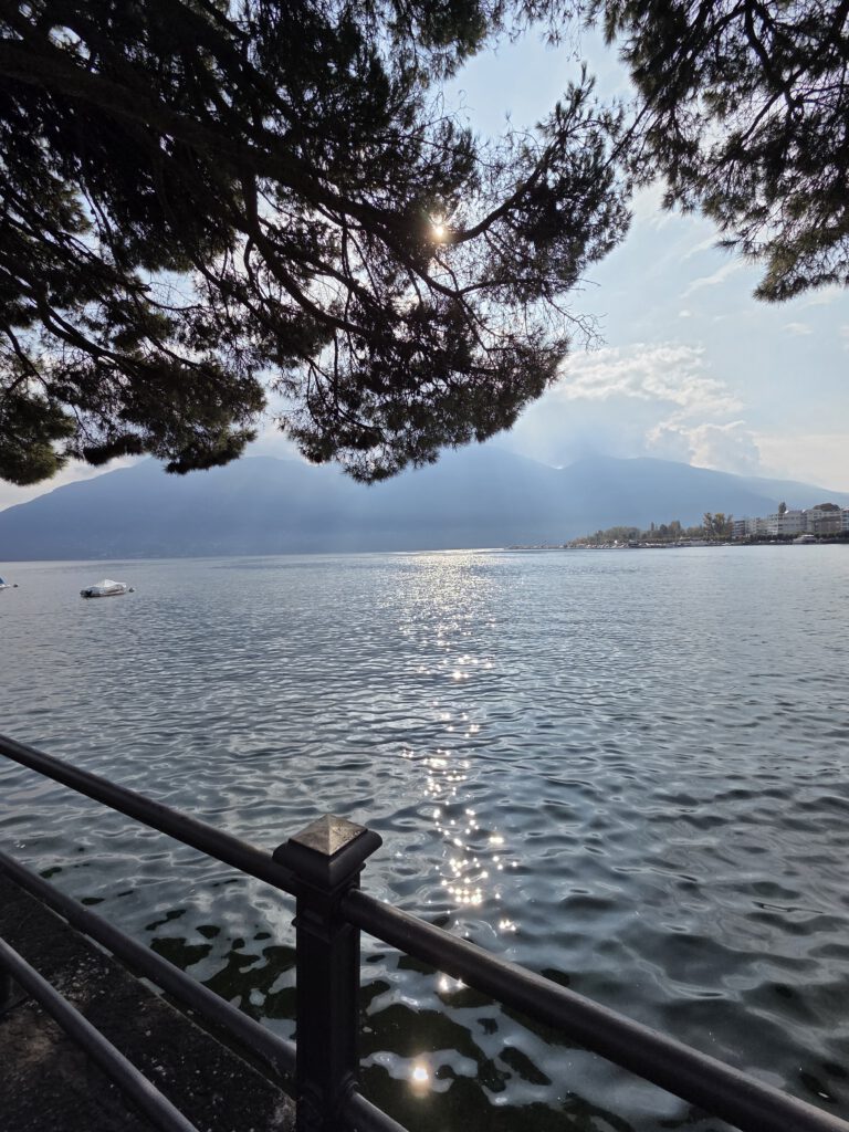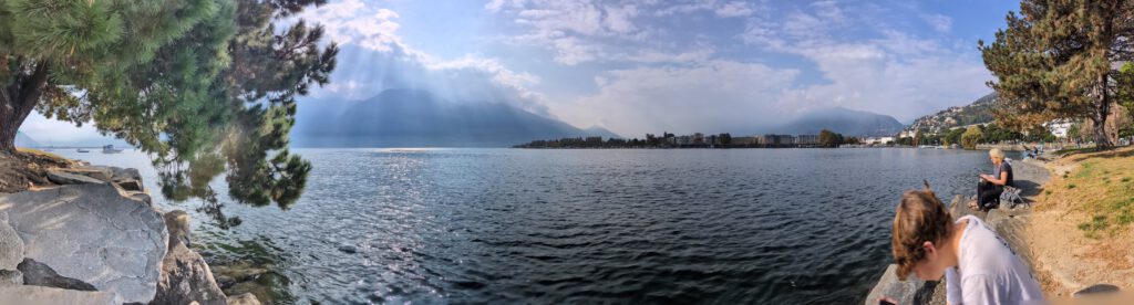 Wir gehen durch unser supermodernes neues Stadtviertel Richtung See. Dann am Ufer entlang, Sonne tanken. Auf den See schauen, am Ufer sitzen. Bis ein Teenager Hunger bekommt … Da die Reiseleitung nicht gewillt ist, gleich wieder Unsummen auszugeben, spricht sie kurzerhand eine Schweizerin an, die an der Ampel neben ihr genüsslich eine Quiche kaut. Das Al Porto, nahe dem Bahnhof gelegen, hat tatsächlich für jeden was – und eine sehr verlockende Auswahl an Süß Teilchen, die wir uns aber für später aufheben wollen.