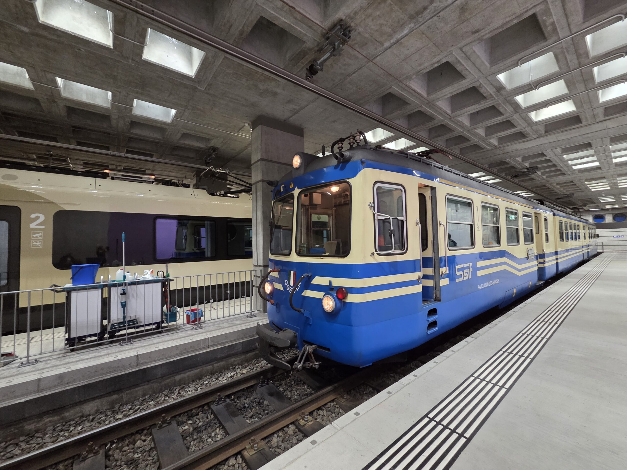 Diesmal sitzen wir in einem der Panoramazüge, die Sitze sind davon nicht breiter geworden. Dafür sind wir umzingelt von betagten Briten, die angesichts der Bergwelt aus dem Staunen nicht herauskommen und durchfilmen. Hier gäbe es sogar einen Servicewagen mit Kaffee, Bier und Aperol Spritz. Gibt es natürlich nicht, wir haben ja noch was vor.