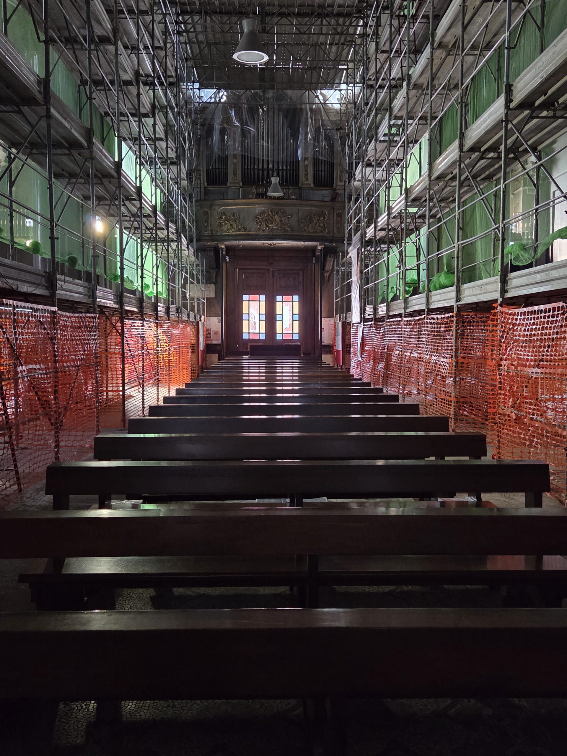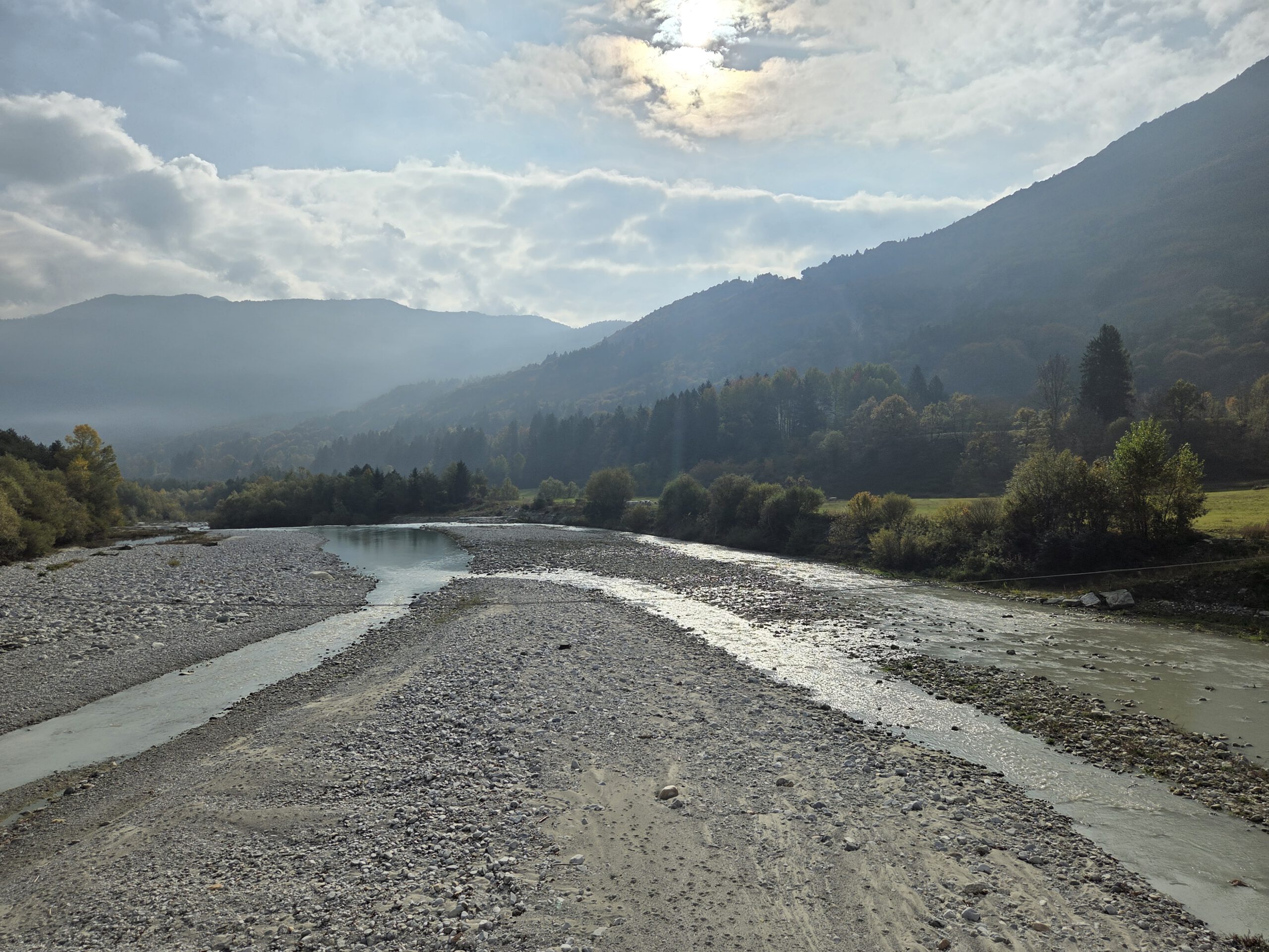 In Domodossola kommen wir um 11.40 Uhr an und haben bis 13.36 Uhr Zeit. Kilian wählt souverän nicht nur eine hervorragende Pizzeria aus, sondern auch noch eine mit Kirchenblick – er kennt seine Mutter schon länger. Louisa schmaust eine Lasagne, der Rest isst Pizza, es gibt ein Gläschen Wein und Espresso. Nicht nur lecker, sondern im Vergleich zu Locarno auch so unglaublich günstig … Wir bestaunen erst eine Gottesanbeterin, dann die Kirche nebenan, noch schnell ein Eis und es geht durch die angenehme Kleinstadt schon wieder zum Bahnhof.