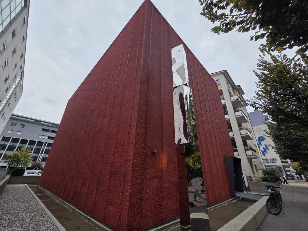 Danach geht es noch in die Fondazione Ghisla Art Collection: Moderne Kunst in einem dunkelroten Kubus, der früher mal ein Drei-Familien-Haus war. Das Ehepaar Ghisla hat eine Stiftung gegründet, um seine gesammelten Werke plus Gastkünstlern ausstellen zu können. Aktuell geht es um Italienisch-amerikanische Kunst, darunter Andy Warhol, Basquiat und Roy Lichtenstein. Der Audioguide doziert sich kunstgeschichtlich etwas in Off. Das geht offensichtlich auch anders: Parallel läuft zu fröhlichem Gitarrengesang eines Mannes mit Sonnenhut auch eine Kinderführung, an der zirka 15 Knirpse teilnehmen. Das Ehepaar Ghisla ist auch im eigenen Museum präsent und steht unauffällig an der Kasse.