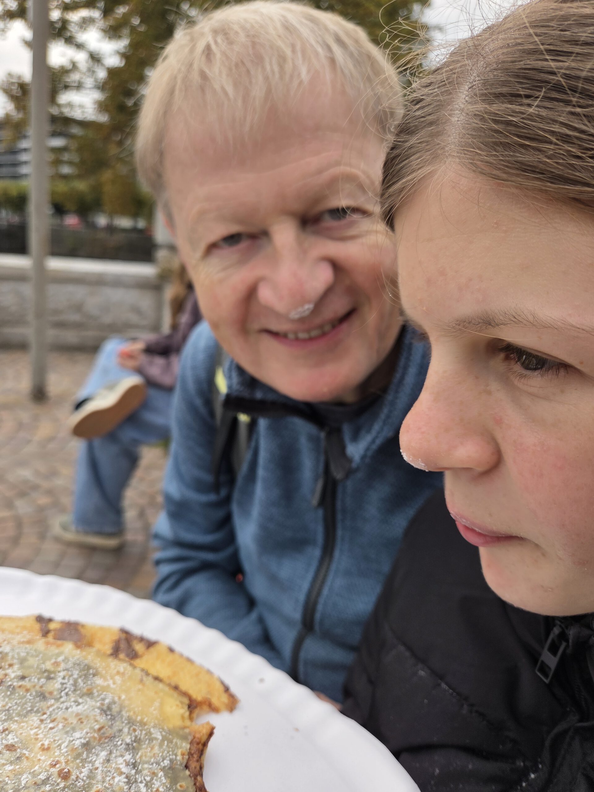 Kein Regen, aber ein trüber Sonntag. Wir starten gemütlich und verlassen das Haus erst spät. Eine Runde durch den Teil der Innenstadt, den wir noch nicht gesehen haben. Vorbei am Schloss und durch drei Kirchen. Wir lernen: Wenn sich die Reiseleitung in einem Restaurant höflich auf Italienisch nach einer Toilette erkundigt, dann ist das überhaupt kein Problem. Die Straßen sind menschenleer und wir fragen uns, wo die Bewohner von Locarno wohl stecken. Alle beim Kastanienfest bei der Wallfahrtskirche?