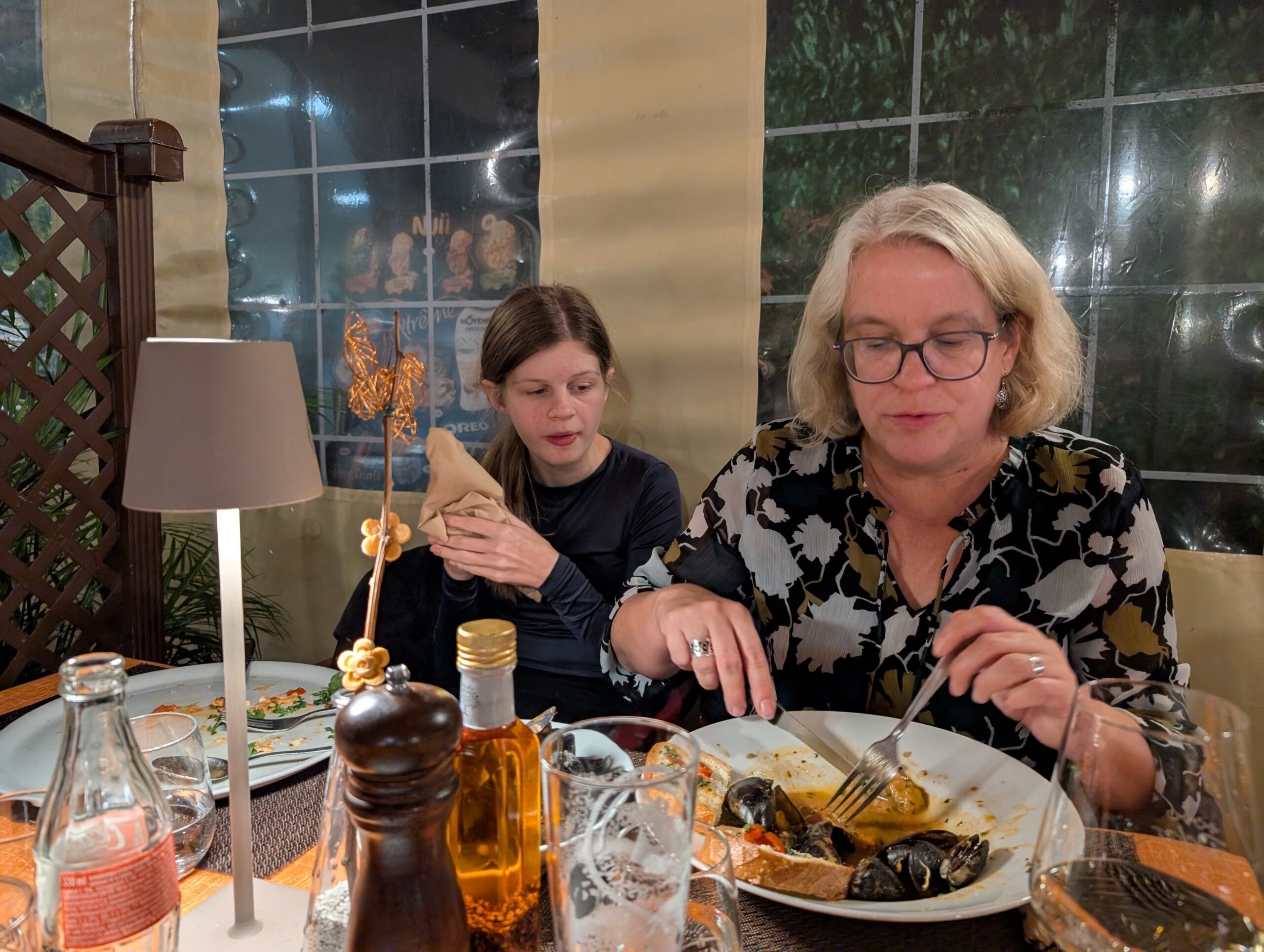 Danach geht es am See entlang zurück in die Ferienwohnung, den Auszug vorbereiten. Und zum Abschluss sind wir noch einmal im Ristorante am Campingplatz. Schön wars.